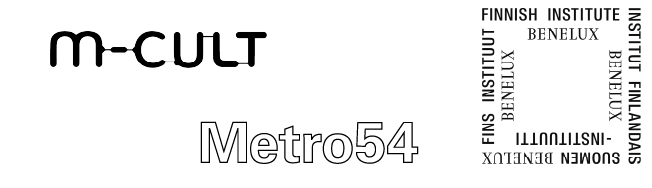 Commissions are produced within Everyday Priorities – Art, Technology and Accommodations, a project by M-Cult (Helsinki) and Metro54 (Amsterdam) in collaboration with the Finnish Cultural Institute for the Benelux.